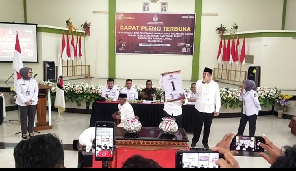 Penetapan hasil pengundian nomor urut Paslon Bupati dan Wakil Bupati tersebut telah di tuangkan dalam berita acara turut disaksikan oleh Bawaslu Kabupaten Padang Lawas, dan mewakili Pj. Bupati hadir Sekda Arfan Nasution, Kapolres Padang Lawas.