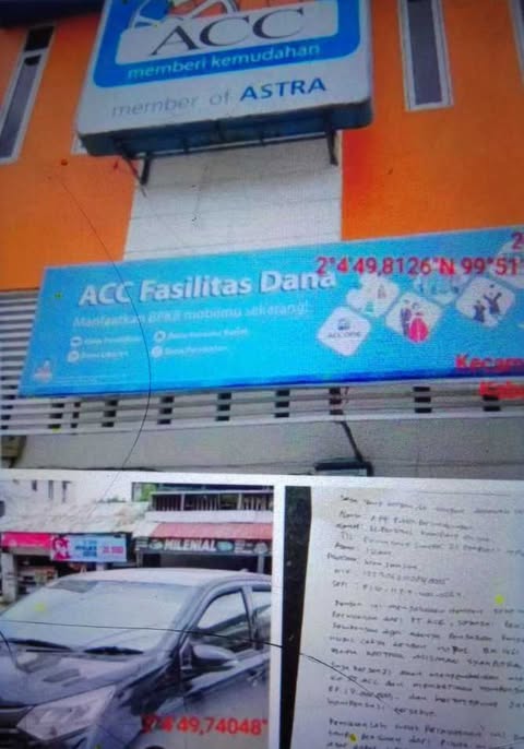 “Namun dikarenakan saya menunggak 1 (satu) bulan,Tiba-tiba datang 4 (empat) orang yang tidak dikenal datang kerumah saya, kemudian salah seorang mengenal kan diri berinisial (AP) dari perwakilan ACC Finance untuk menagih kredit saya yang telah menunggak.