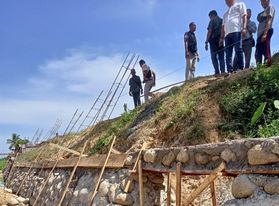 “Para Wartawan juga menemukan bagian dinding saluran induk yang sudah mulai retak. Juga terdapat pasangan batu yang bagian bawahnya hanya ditahan dengan papan, yaitu tepatnya dekat dengan saluran lain diluar pekerjaan proyek dan dikhawatirkan jika papan sudah mulai membusuk, maka pasangan batu akan patah.
