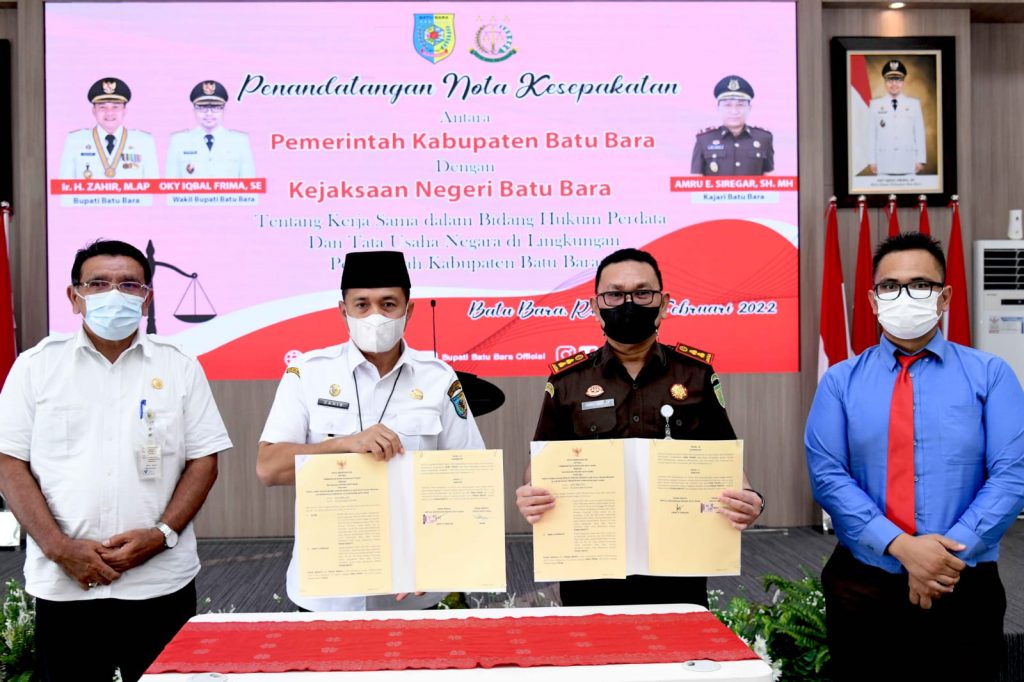 Batu Bara – mediaberantaskriminal.com | Pemerintah Daerah Kabupaten (Pemdakab) Batu Bara bersama dengan kejaksaan Negeri Batu Bara tanda tangani Nota Kesepakatan tentang kerjasama dalam bidang hukum perdata dan tata usaha negara di lingkungan Pemerintah Daerah Kabupaten (Pemdakab) Batu Bara.