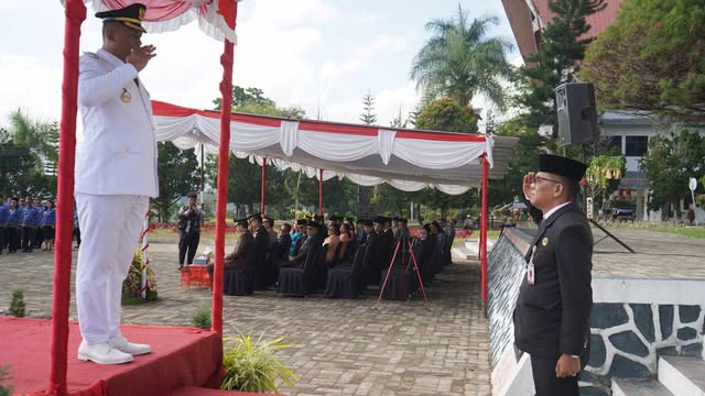 Bupati Toba, Effendi Sintong P. Napitupulu yang bertindak sebagai inspektur upacara membacakan pidato Menteri Dalam Negeri yang mengusung tema “Dengan Otonomi Daerah Kita Wujudkan Astacita.”