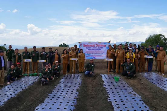 Toba, Silaen – mediaberantaskriminal.com | Badan Usaha Desa Bersama Alanibasana (Bumdesma) yang terdiri dari Desa Ombur, Desa Pardomuan, Desa Simanobak, Desa Napitupulu dan Desa Parsambilan Kecamatan Silaen, Kabupaten Toba melaksanakan penanaman perdana bawang merah varietas batu ijo di Simalopak, Desa Ombur pada Selasa (07/10/2025) siang.
