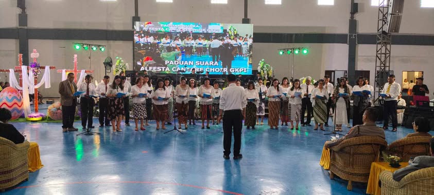 Perayaan kemudian dilanjutkan dengan ibadah Paskah yang khidmat, diisi dengan pujian, penampilan paduan suara (koor), serta vocal group yang menambah suasana semakin semarak.