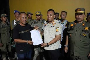 Selanjutnya Kasi penertipan bangunan Sat Pol PP Kab. Langkat Sdr. WIRA GINTING membacakan surat dari Sekda Kab. Langkat perihal penutupan sementara tempat usaha dan menyerahkan surat tersebut kepada pengawas tempat usaha an. BAMBANG SEMBIRING.