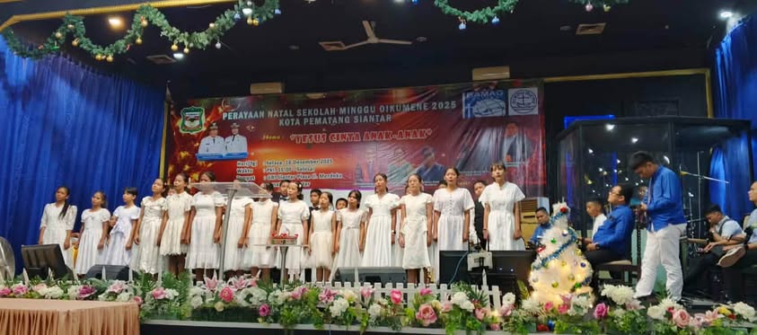 Ucapan Natal, acara Perayaan Natal Sekolah Minggu Ouikemene 2025 di Kota Pematangsiantar dilaksanakan dengan “Kegiatan sosial dan pada akhir acara digelar makan bersama, dilanjutkan pemberian bingkisan Natal,” ucap Humas Panitia, Ev Rizky Nainggolan menjelaskan kepada awak media.