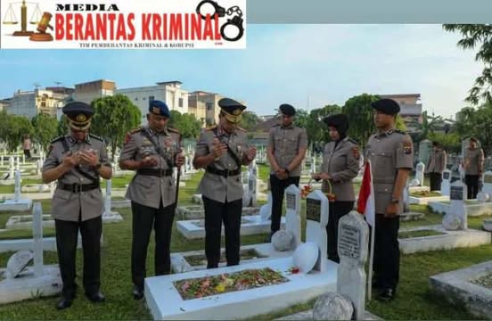 Medan, mediaberantaskriminal.com – Dalam rangka memperingati Hari Ulang Tahun (HUT) Bhayangkara ke-79 tahun 2025, Kepolisian Daerah Sumatera Utara (Polda Sumut) menggelar upacara ziarah rombongan di Taman Makam Pahlawan (TMP) Bukit Barisan, Jalan Sisingamangaraja, Medan, Senin pagi (23/06/2025) pukul 07.30 WIB.
