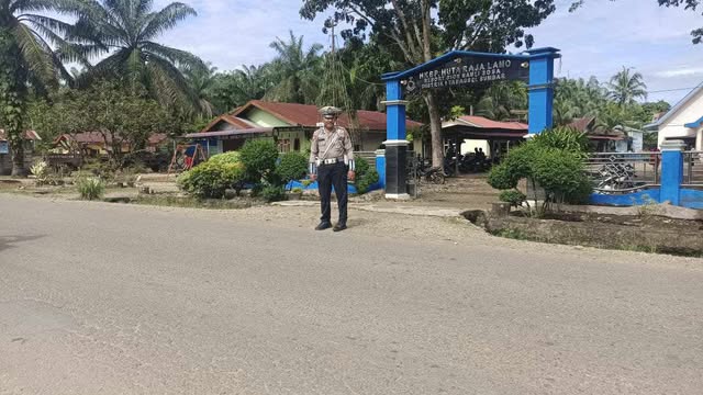 PADANG LAWAS, Media Berantas Kriminal – Polres Padang Lawas Aipda Poloster Pasaribu SH melaksanakan pengamanan Patroli dan Gatur Ibadah Hari Minggu di depan Gereja HKBP Hutaraja Lamo di Desa Hutaraja Lamo Kec. Sosa Kab. Padang Lawas, Situasi arus lalin aman dan lancar, Minggu (26/01/2025).