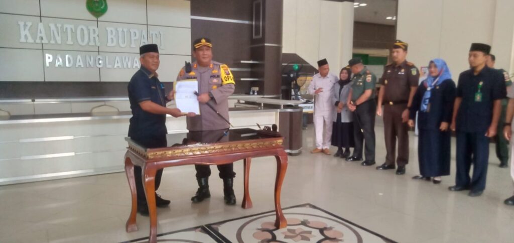 Acara Penandatangan tersebut turut dihadiri, Kapolres Padanglawas, AKBP Diari Astetika, Dandim 0212/TS, Letkol Inf Amrizal Nasution, Sekdakab Palas Arpan Nasution, S.Sos, Kabag REN Pilres Palas Kompol P, Simarmata, Ketua Pengadilan Negeri Sibuhuan Lulik Djatikumoro, Ketua Pengadilan Agama Sibuhuan Bainar Ritonga, Kejari Palas Teuku Herizal.