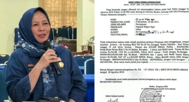 Laporan tersebut tertuang dalam surat laporan Nomor: STTLP/2023/VI/2016/SPKT RESTA MEDAN. Dalam laporan itu, EW menyebutkan bahwa dirinya menjadi korban penipuan oleh seseorang bernama Zulfachri.