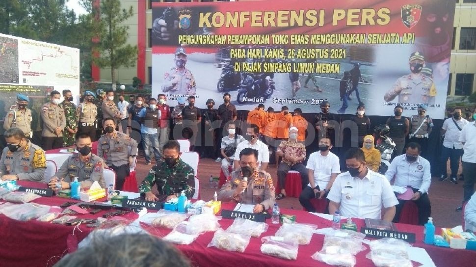 Kegiatan press release tersebut dipimpin langsung oleh Kapolda Sumut, Irjen. Pol. Drs. R.Z. Panca Putra Simanjuntak, M.Si., Kamis (16/09/2021) bertempat di Lapangan KS Tubun Polda Sumut, didampingi oleh Pangdam I/BB, Mayjen TNI Hassanudin, S.I.P., M.M., Wakapolda Sumut, Brigjen Pol. Dr. Dadang Hartanto, S.H., S.I.K., M.Si., Walikota Medan, Irwasda Polda Sumut, Kombes Pol Drs. Armia Fahmi, M.H, PJU Polda Sumut, Dir Krimum Polda Sumut, Kombes Pol Tatan Dirsan Atmaja,SIK dan Para awak Media.