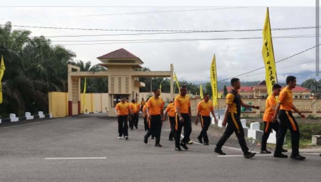 Setelah itu dilaksanakan jalan dan lari pagi keluar Polres Padang Lawas yang di pimpin langsung Waka Polres Kompol Sugianto S.Pd diikuti personil Polres Padang Lawas.