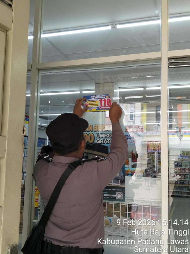 Padang Lawas, mediaberantaskriminal.com – Dalam upaya meningkatkan pelayanan yang lebih mudah kepada masyarakat dan mempercepat akses terhadap laporan serta pengaduan Masyarakat (Dumas), Kepolisian Resor Padang Lawas (Polres Palas) kembali melaksanakan sosialisasi layanan Call Center 110 dengan menyebarkan stiker di sejumlah lokasi strategis.