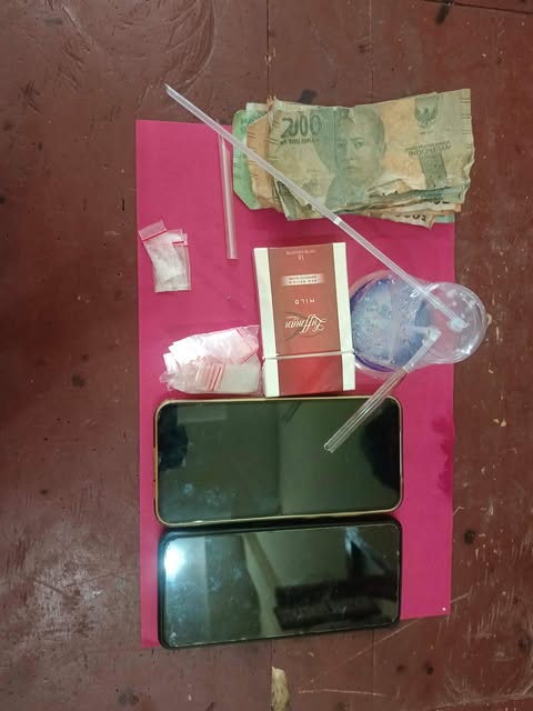 “Dari penggeledahan, ditemukan Barang Bukti tersebut berupa 4 buah plastik klip berisikan narkotika, 1 kotak bungkus rokok LUFMAN., 1 bal plastik klip kosong, 1 Unit handphone Oppo warna hitam, 1 Unit handphone Samsung warna putih, dan uang tunai Rp. 110.000., (Seratus sepuluh ribu rupiah)”. Katanya.