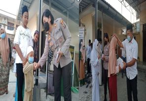Kegiatan dilanjutkan dengan memberikan tali asih dan nasi kotak kepada anak yatim dari Lingkungan 2 Kelurahan Babura Kecamatan Medan Baru yang diserahkan langsung Plt Kapolsek Medan Baru AKP Ully Lubis SH didampingi Kanit Reskrim Iptu Irwansyah Sitorus SH MH.