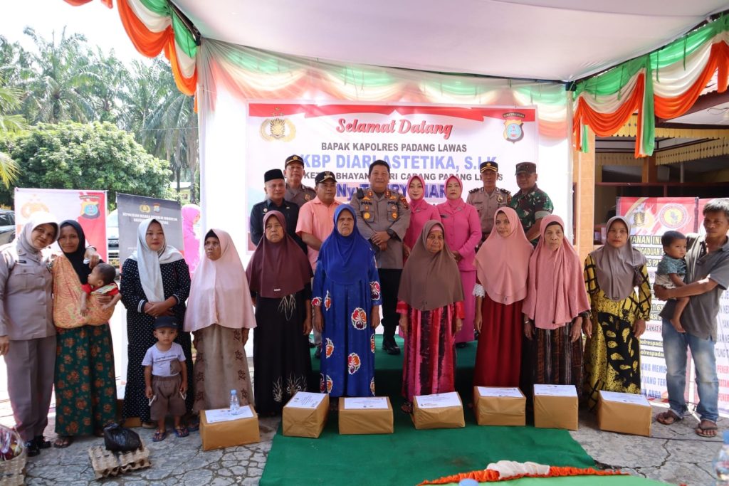 Di akhir acara, Kapolres dan Ibu Ketua Bhayangkari Cabang membagikan Sembako berupa, Telur, Minyak Goreng, Beras, Buah buahan dan beberapa Obat-Obatan, selama kegiatan berlangsung keadaan berjalan aman dan kondusif.