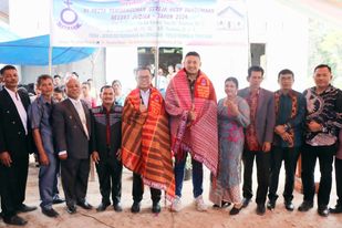 “Seperti yang dikatakan oleh Pak Pendeta tadi, peletakan batu pertama pembangunan gereja ini telah dimulai sejak tahun 2018 yang lalu dan saat ini sudah hampir selesai dengan bangunan yang besar, padahal jemaatnya hanya 16 KK,” katanya mengawali sambutannya.