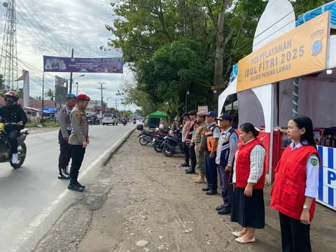“Pengamanan maksimal di Pos Pam dan pos Yan, Polres Padang Lawas berharap dapat menciptakan suasana yang aman dan nyaman bagi seluruh masyarakat dalam merayakan Idul Fitri 1446 H /Tahun 2025 M”Tutur Bripka Ginda K Pohan. (Humas Polres Palas)