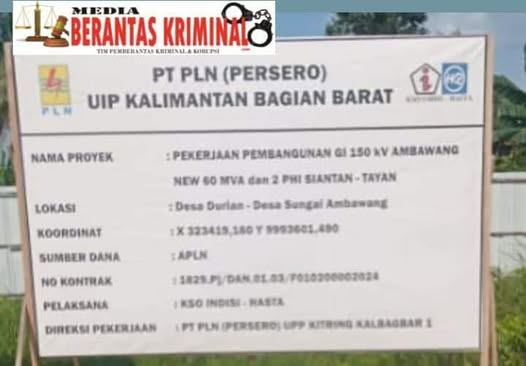 Kubu Raya, Kalbar, mediaberantaskrimnal.com – Minggu, 03 Agustus 2025, Proyek pembangunan Gardu Induk (GI) 150 KV Ambawang New 60 MVA dan 2 PHI Siantan–Tayan milik PT PLN (Persero) yang berlokasi di Desa Durian, Kecamatan Sungai Ambawang, Kabupaten Kubu Raya, Kalimantan Barat, menuai sorotan tajam dari Lembaga Swadaya Masyarakat Monitor Aparatur Untuk Negara dan Golongan (LSM MAUNG).