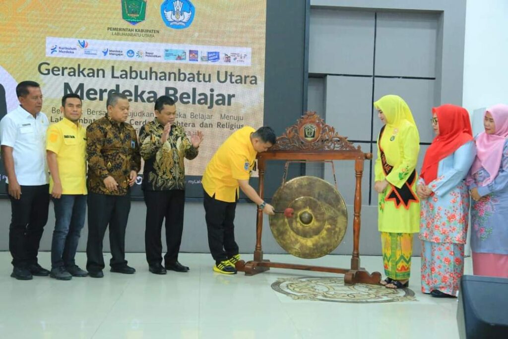 Dengan memukul gong, Bupati Labura Hendri Yanto Sitorus dan juga turut didampingi Wakil Bupati Labura H. Samsul Tanjung, Ketua TP.PKK Ny. dr. Rama Dhona Hendriyanto Sitorus M.Ked(Ped),Sp.A dan Ketua I Bidang Pembinaan Karakter Keluarga TP.PKK Ny. dr. Hj. Zuhriani Samsul Tanjung, Ketua DPRD Labura H. Indra Surya Bakti Simatupang secara resmi membuka acara Gerakan Labura Merdeka Belajar.