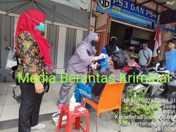 Pematangsiantar – Media Berantas Kriminal | Bhabinkamtibmas Polres Pematangsiantar melakukan Tes swab Antigen kepada Masyarakat Kelurahan Bantan Pematangsiantar, Kamis (19/08/2021) dalam kesempatan itu turut melibatkan Bhabinsa, Pegawai Kelurahan Bantan dan Pegawai Puskesmas.