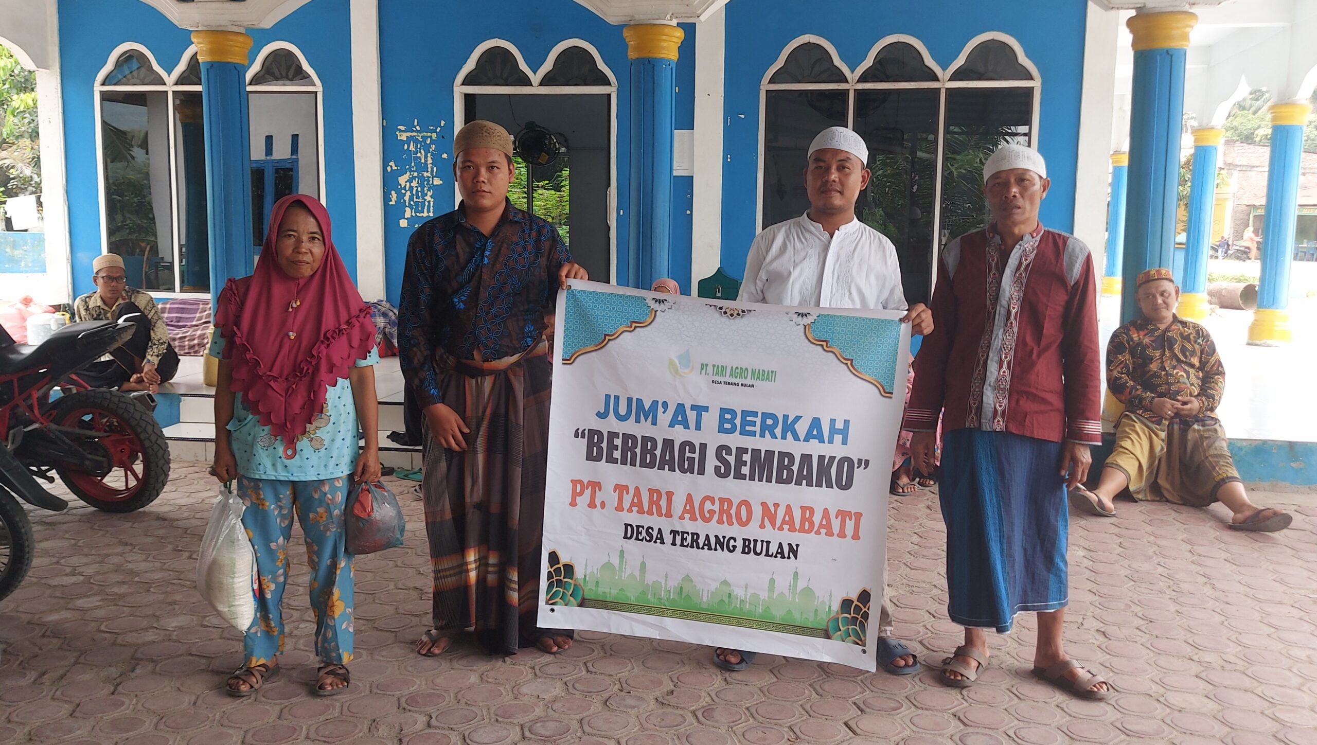 Diketahui, sebelumnya sekitar dua minggu yang lalu Program Jum’at Berkah PT.TAN bagi bagi sembako sudah dilaksanakan di Mesjid Al-Hidayah, Jalan Lintas Sumatera Pasar Baru, Desa Terang Bulan.