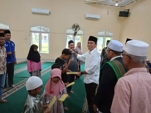 Setelah sambutan dilanjutkan dengan pemberian santunan kepada anak yatim/piatu, Fakir Miskin dan bantuan kepada Mesjid berupa ambal.