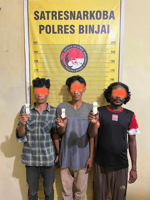 Lokasi Pertama, jalan benih kelurahan cengkeh turi kecamatan binjai utara, kota Binjai, disaat tim melakukan penggrebekan di tkp ditemukan 3 (tiga) orang laki-laki dengan inisial SU als Bela (41), DS (34), MR (41).