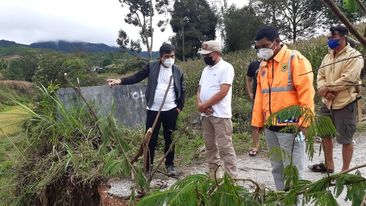 Sekda saat meninjau jembatan amblas tersebut, mengimbau warga agar sementara tidak melintas dari jembatan yang amblas.