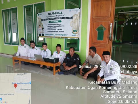 TEBAT JAYA (mediaberantaskriminal.com) – Kantor Urusan Agama (KUA) Buay Madang kembali menunjukkan komitmennya dalam mendekatkan layanan kepada masyarakat melalui kegiatan SALAM (Safari Melayani Masyarakat) yang dilaksanakan pada Selasa (28/04/2026), bertempat di Masjid Baitul Khasanah, Desa Tebat Jaya, Kecamatan Buay Madang.