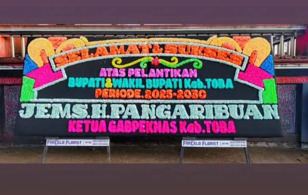 TOBA, Media Berantas Kriminal – Sepanjang Kompleks Kantor Bupati Toba dan Jalan Protokol dihiasi dengan Ratusan Papan Bunga Ucapan Selamat atas pelantikan Bupati dan Wakil Bupati Toba . Demikian Pantauan Wartawan Media Berantas Kriminal, pada Kamis (20/02/2025).