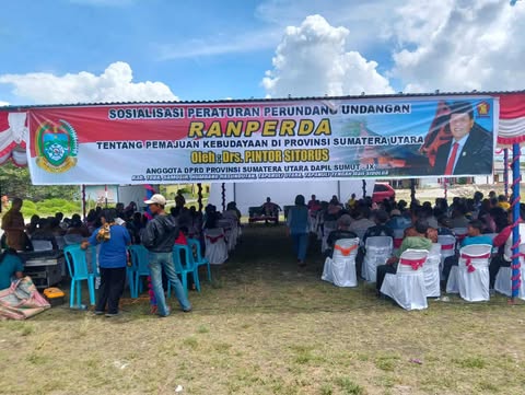 Toba, mediaberantaskriminal.com – Anggota DPRD Sumut IX, Drs Pintor Sitorus dari Partai Gerinda Gelar Sosialisasi tentang Pemajuan Kebudayaan di Provinsi Sumatera Utara. Kegiatan ini dilakukan di Halaman kantor Desa Tambunan Lumban Gaol, Kecamatan Balige, Kabupaten Toba , Senin (17/11/2025).
