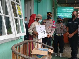 Aceh Tamiang – Media Berantas Kriminal | Kapolres Aceh Tamiang serahkan hadiah Umroh dari Kapolda Aceh kepada Sudarman (46 tahun) warga Kampung Sriwijaya Kecamatan Kota Kualasimpang, kegiatan berlangsung dirumahnya pada Jum’at (12/11/2021).