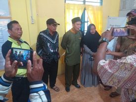 Suwondo SPd dismbut dengan wajah gembira/mendukung, warga Dusun IV Bakaran Batu, Desa Petatal saat mendaftarkan diri sebagai calon kepala desa. Selain Suwondo berpendidikan, beliau juga sebelumnya bertugas sebagai Kadus dan Bilal masjid di desa tersebut,” ucap warga.