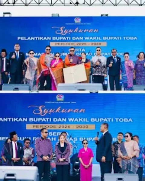 Toba, mediaberantaskriminal.com – Syukuran Bupati dan Wakil Bupati Toba Efendi Napitupulu dan Murphy Sitorus Periode 2025-2030berjalan lancar, serta acara di kegiatan syukuran memasuki rumah dinas Bupati Toba, yang di laksanakan dihalaman kompleks kantor Bupati Toba Sabtu (07/06/2025), penuh dengan kegembiraan, kebahagiaan dalam suka cita dan berjalan lancar.