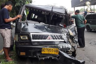 “Mobil saya ditabrak dari belakang,” kata Torang Tobing supir L 300, di Stabat, Jumat (30/07/2021).