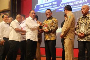 Toba – Media Berantas Kriminal | Bupati Toba, Poltak Sitorus menerima Plakat Penghargaan penanda...