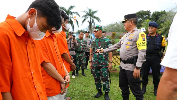 Kapolda Sumut Irjen Agung dan Pangdam I Bukit Barisan Mayjen Mochammad Hasan saat menginterogasi...
