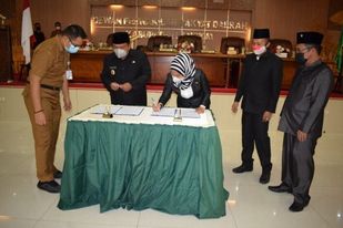 Dipimpin Ketua DPRD Sribana Perangin Angin, DPRD Kabupaten Langkat gelar rapat paripurna dengan agenda pengesahan/persetujuan 12 Rancangan Peraturan Daerah (Ranperda) menjadi Peraturan Daerah Kabupaten Langkat, Selasa (31/08/2021).