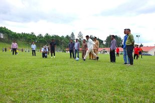 Toba – Media Berantas Kriminal | Tendangan bola pertama Hemlan Silaen, Community Development (CD) & Media Relation Manager Toba Pulp Lestari (TPL) menandai pembukaan Turnamen Sepak Bola Antar Sekolah Dasar (SD) Se-Kecamatan Parmaksian, Kabupaten Toba yang berlangsung 12 – 18 Juni 2023.