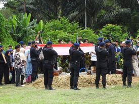 Setelah upacara berlangsung, dilanjutkan dengan penaburan bunga, penimbunan liang lahat secara simbolis oleh Inspektur upacara yang didampingi satu orang keluarga, dan dilanjutkan dengan tali asih.