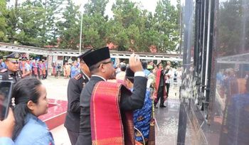 Memperingati hari gugurnya Raja Sisingamangaraja XII, Forkopimda Kabupaten Toba bersama ASN dan pelajar melaksanakan Upacara Ziarah Nasional pada Kamis (20/6/2024). Tema upacara kali ini adalah “Pantun Hangoluan Tois Hamagoan.”