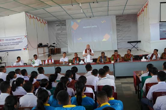 “Sekarang kalian sulit memilih sekolah, buku, makanan dan yang lain. Sementara dimasa kami, kami kesulitan mencari sedangkan kalian sekarang sudah sulit memilih,” ujar Wakil Bupati memotivasi para pelajar.