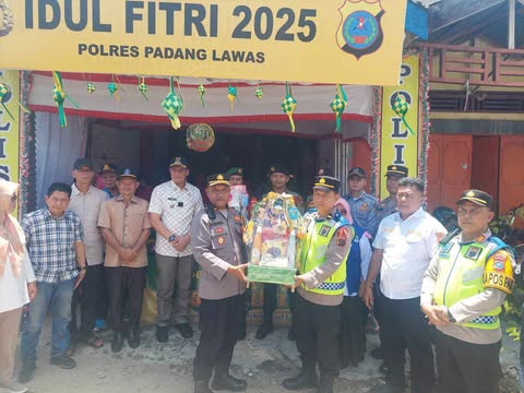 Wakapolres Palas, Kompol Sugianto, S.Pd, bersama Wakil Bupati Padang Lawas (Wabup Palas) H. Achmad Fauzan Nasution, S. H. I., M.Pd.I bersama Wakil Ketua Ranting Bhayangkari Polres Palas Ny. Betty Sugianto, di dampingi PJU Polres Palas, Kapolsek Barteng, AKP Elimawan Sitorus, SH, MH., dan Instansi Pemkab Palas, dalam rangka jelang Lebaran 1446 H, mengunjungi wilayah hukum Pos Pam 1 Barteng, sekaligus menyerahkan bingkisan kepada Petugas Pos PAM Idul Fitri. Minggu, (30/03/2025). Pukul 11.30 wib hingga selesai.