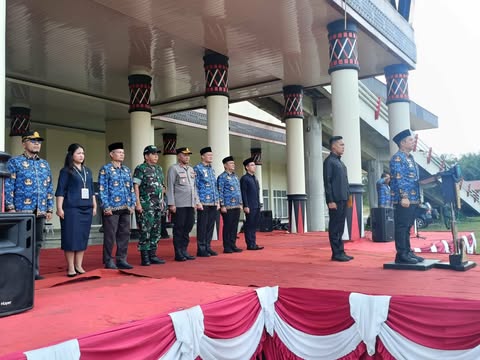 Padang Lawas, mediaberantaskriminal.com – Kapolres Padang Lawas AKBP Dodik Yuliyanto, SIK, yang diwakilkan Wakapolres Padang Lawas Kompol Sugianto, S.Pd, menghadiri Upacara Bendera dalam rangka memperingati Hari Kesadaran Nasional. Kegiatan berlangsung khidmat di Lapangan Kantor Bupati Kabupaten Padang Lawas, Jalan. SKPD Pemkab Padang Lawas, Desa Bulu Sonik, Kecamatan Barumun, Kabupaten Palas, Rabu (18/02/2025) sekira pukul 09.00 Wib sampai selesai.