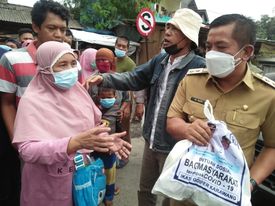 Sementara itu suasana bahagia tampak terlihat dari Suhendi salah satu penerima bantuan sembako warga johar Karawang yang mendapatkan bantuan.