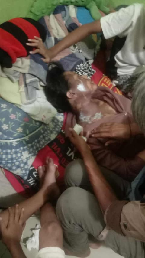 Korban mengalami luka bakar di bagian muka, leher, tangan sebelah kiri, kaki bagian kanan dan kedua belah mata memerah akibat disiram cairan oleh OTK (Orang Tak Dikenal).